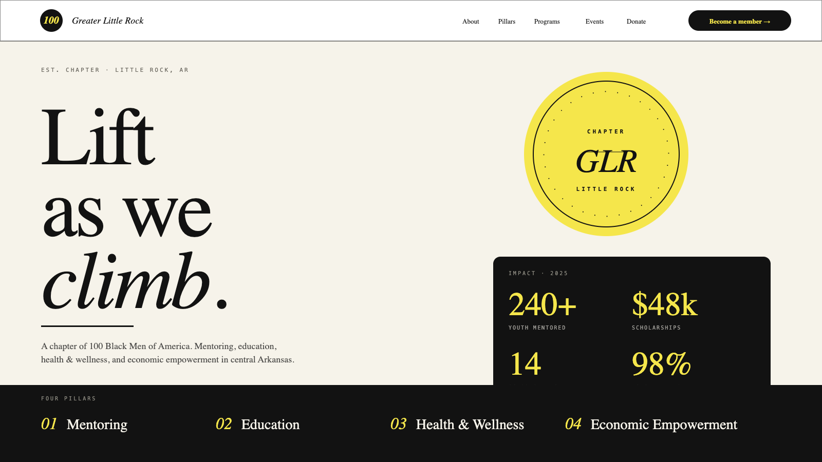 A new chapter website for a 27-year mentorship institution in Little Rock.