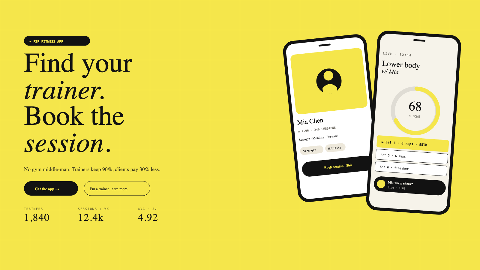 A P2P platform connecting fitness seekers with qualified trainers.